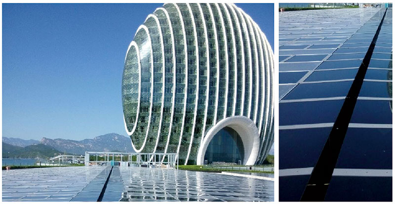 產品應用 高效平板太陽能集熱器 項目規模 集熱器總面積800m2 系統產熱量 日產熱水50噸。供應300間高端客房洗浴、游泳池加熱