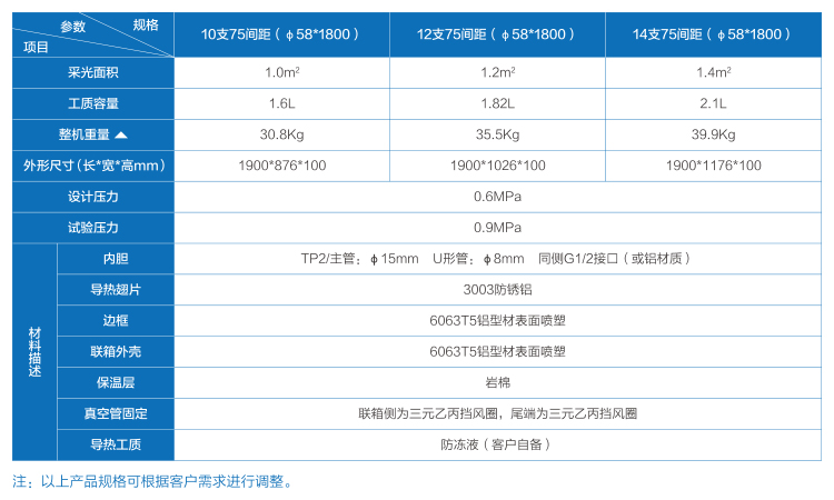 2、真空管內(nèi)采用介質(zhì)傳到熱量,冰點更低,不漏水;